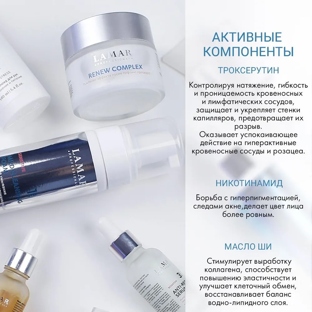 Помогает успокоить и устранить покраснение и раздражение кожи. Благодаря витаминам А и Е маска обладает антиоксидантным эффектом. Никотинамид способствует выработке коллагена и улучшению защитных функций кожи, смягчает, повышает эластичность, увлажняет и успокаивает. Троксерутин участвует в окислительно-восстановительных процессах, блокирует гиалуронидазу и способствует уменьшению проницаемости и ломкости капилляров. Применение: нанести маску на лицо и шею, избегая области вокруг глаз. Оставить на 15-20 минут, остатки маски смыть теплой водой. Рекомендовано к использованию 2 раза в неделю.